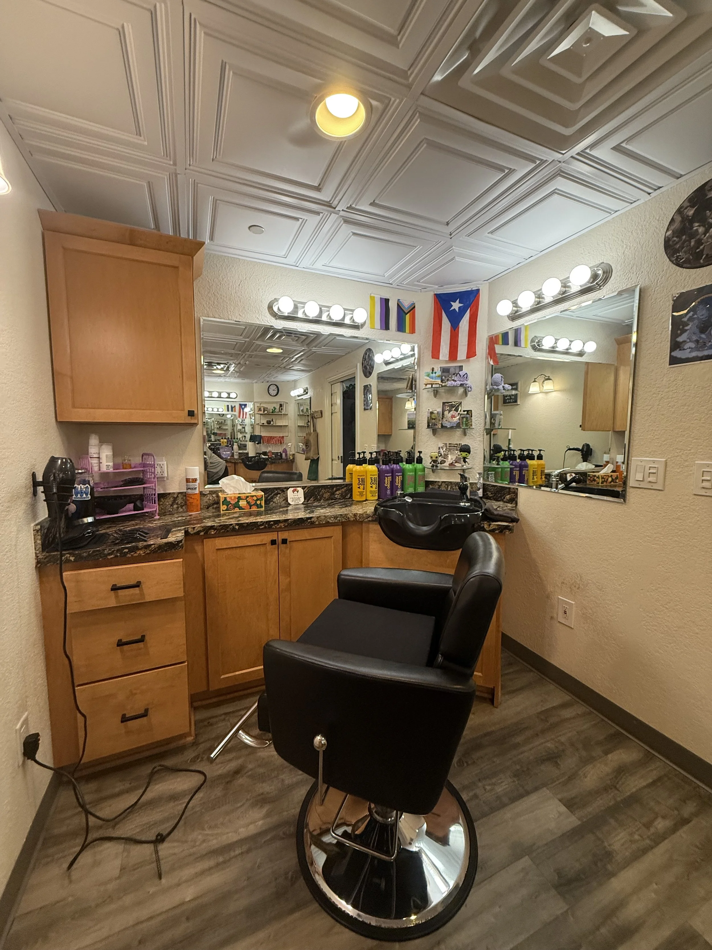 Though I’m still in the process of having my space reflect the work that I do, this space is meant for those who crave the fun salon experience, while also having privacy.